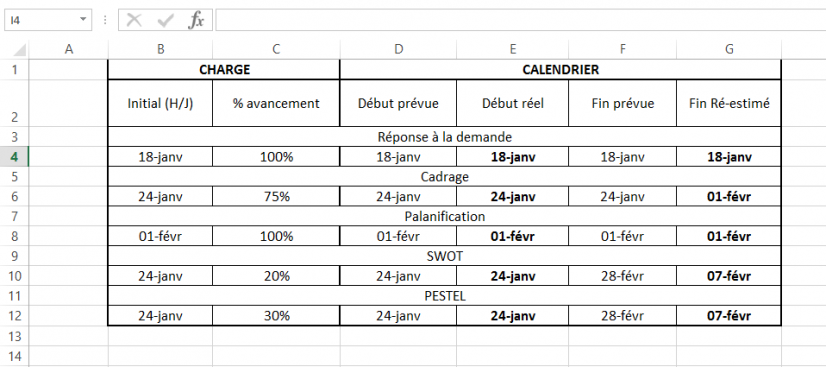 Ci-joint, le tableau de bord, complété au fur et à mesure des séances, sous forme de tableau de situation.
